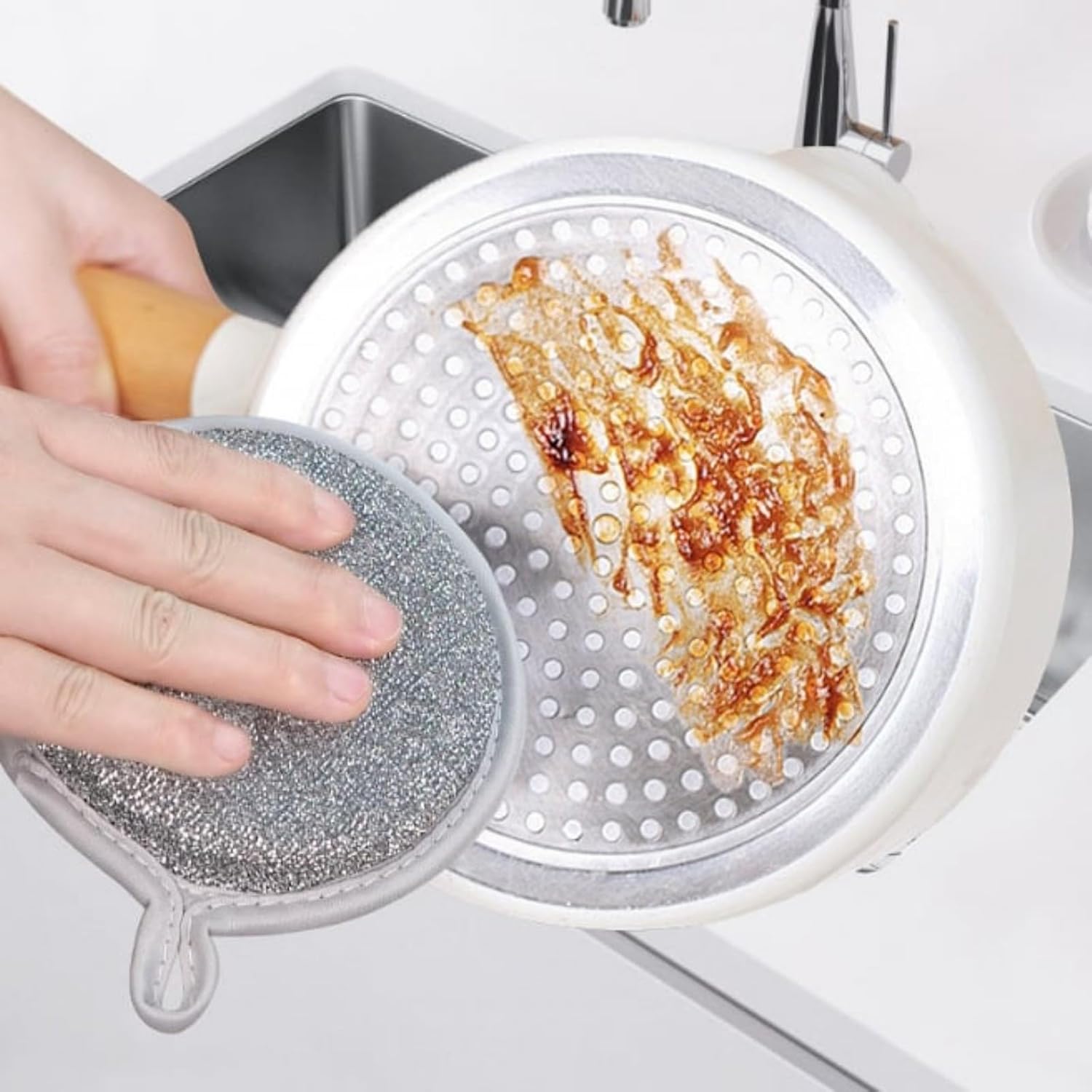 🧽🧴this sponge scrubber quickly cleans kitchen utensils with its practical design, can be hung up to dry swiftly, and features an encrypted steel wire that prevents hand scratches.🧽🧴