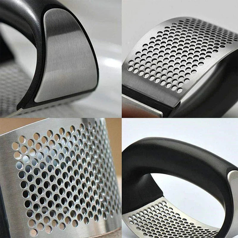 The holes on the garlic masher are small, uniform, and dense. With a slight swing back and forth, you can mash the garlic with fine particles and uniformity.