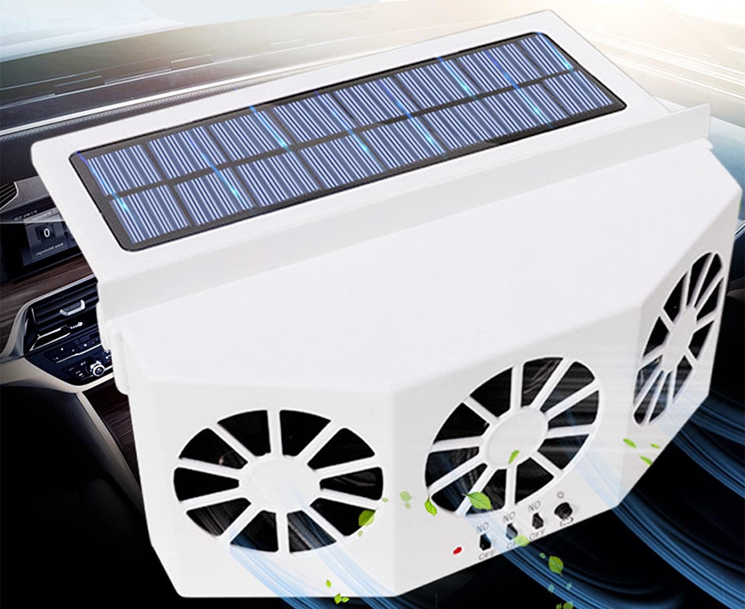 ! It charges using solar power, DOES NOT USE YOUR CAR'S BATTERY OR GAS, to completely cool your car and provide comfort.