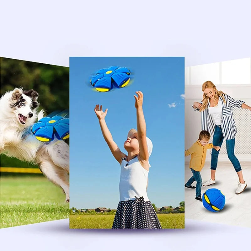 - MAGIC TRANSFORMATION: Freely switched from ball to flying saucer. Can be used as a soccer ball, bowling ball, frisbee & more.